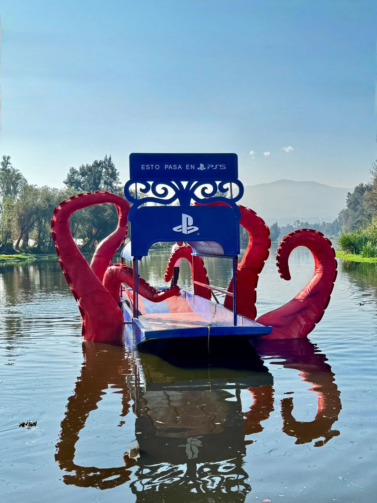La trajinera se convierte así en un punto de encuentro entre fantasía y cotidianidad. Los tentáculos que rodean la embarcación emergen como una presencia inesperada que sorprende a visitantes y habitantes de la zona, replicando esa sensación de descubrimiento, emoción y maravilla que distingue a los jugadores cuando viven momentos únicos dentro de PS5.