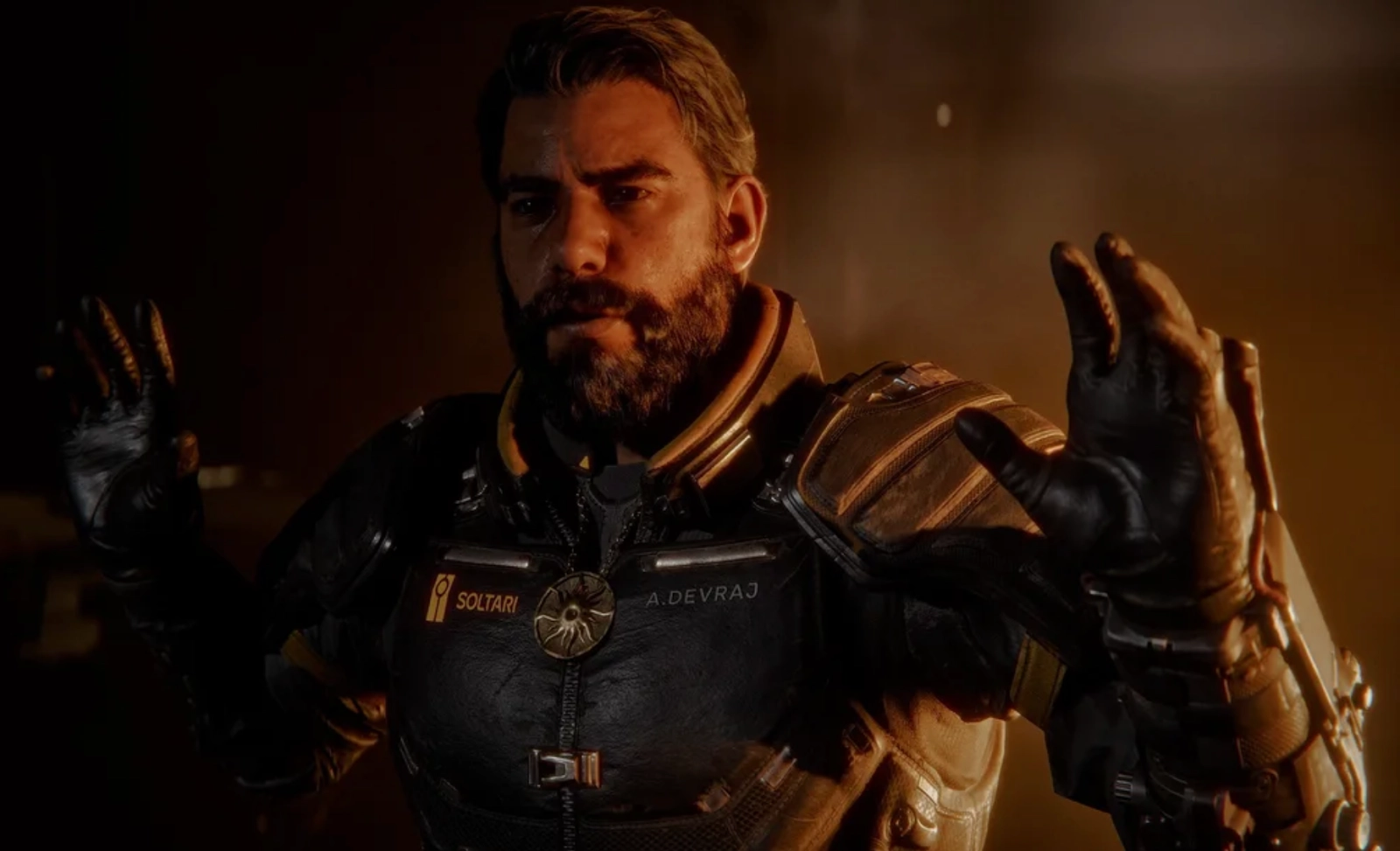 Saros se desarrolla en Carcosa, un planeta alienígena hostil bajo la sombra de un eclipse ominoso. Los jugadores asumirán el rol de Arjun Devraj, un agente Soltari interpretado por Rahul Kohli, cuya misión los llevará a explorar una colonia estelar perdida mientras descubren el costo de forjar un nuevo futuro.