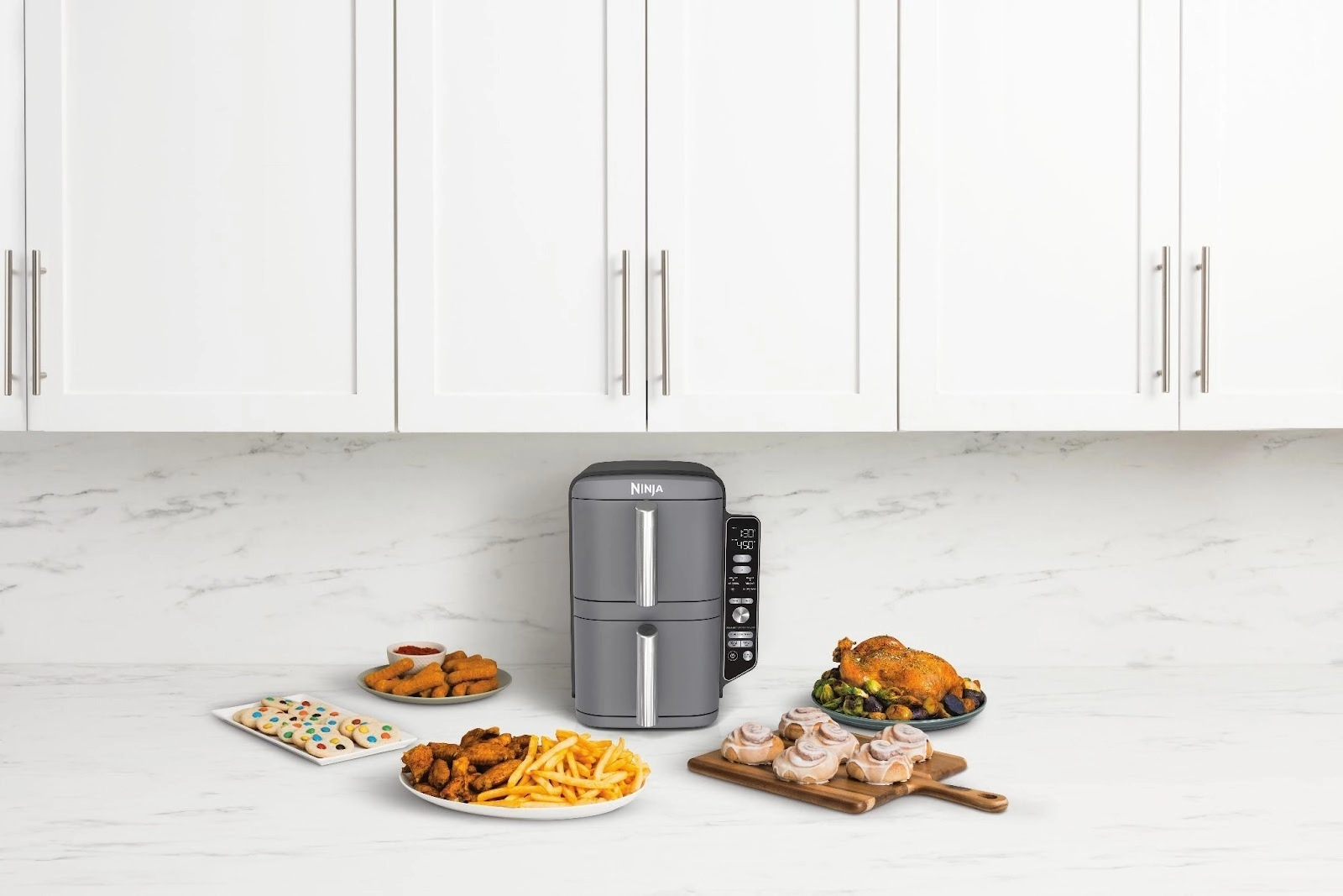 La freidora de aire Ninja® Air Fryer Double Stack convierte esta búsqueda en realidad. Su diseño de doble canastilla permite preparar dos comidas completas y hasta cuatro alimentos al mismo tiempo. Sus dos cestas en torre, junto con la tecnología de cocción por aire con acabado inteligente en cuatro capas, garantizan resultados crujientes, homogéneos y llenos de sabor en cada preparación al cocinar con menos aceite, de manera rápida y sencilla.