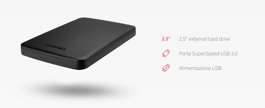 Il vostro PC desktop non è più veloce come un tempo? Avete acquistato un portatile a un buon mercato per poi scoprire che lo storage non è sufficiente? Niente paura, abbiamo il dispositivo giusto per tirarvi fuori dai guai, il Toshiba Canvio da 2TB. Quest'ultimo è un hard disk portatile da ben 2000GB in formato 2,5 pollici; misura 119 x 79 x 15 mm e pesa solo 230 grammi.
