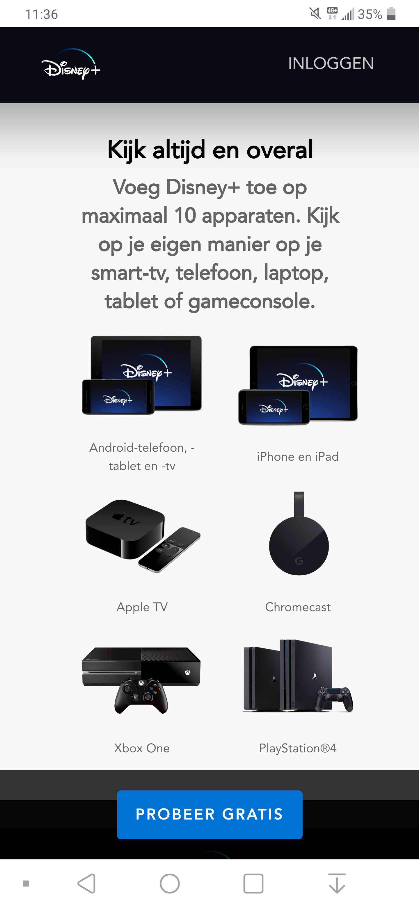 Disney Plus-apps circuleren ook al op het wereldwijde web rond. Natuurlijk mag de streamingdienst niet ontbreken als applicatie in de Google Play Store en Apple App Store. En tvOS mag eveneens niet ontbreken. Aan consoles is ook gedacht: Disney Plus is gereedgemaakt voor de PlayStation 4 en Xbox One. De Nintendo Switch lijkt helaas de boot te moeten missen. De app-store van LG-tv's met webOS beschikt eveneens al over de Disney-app.